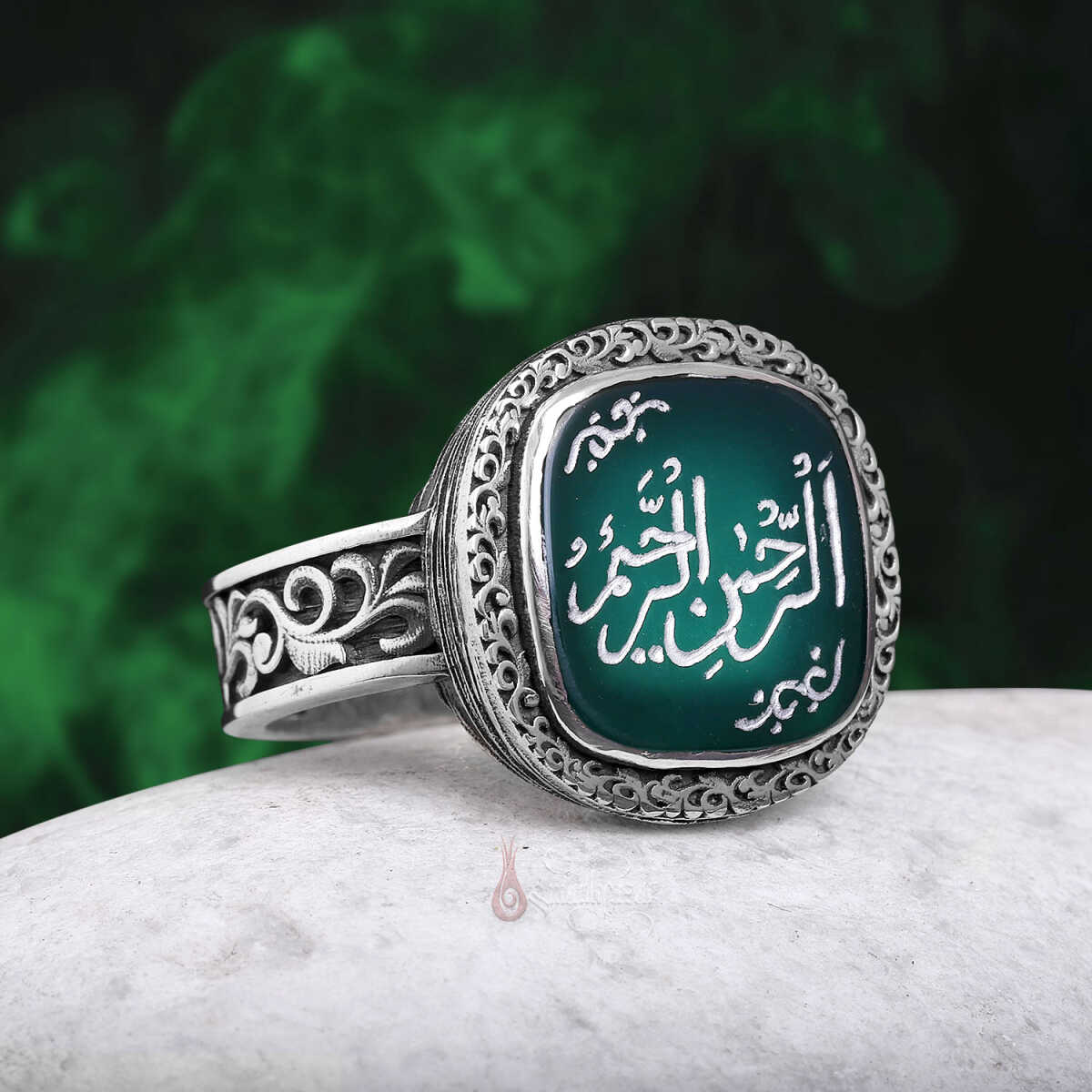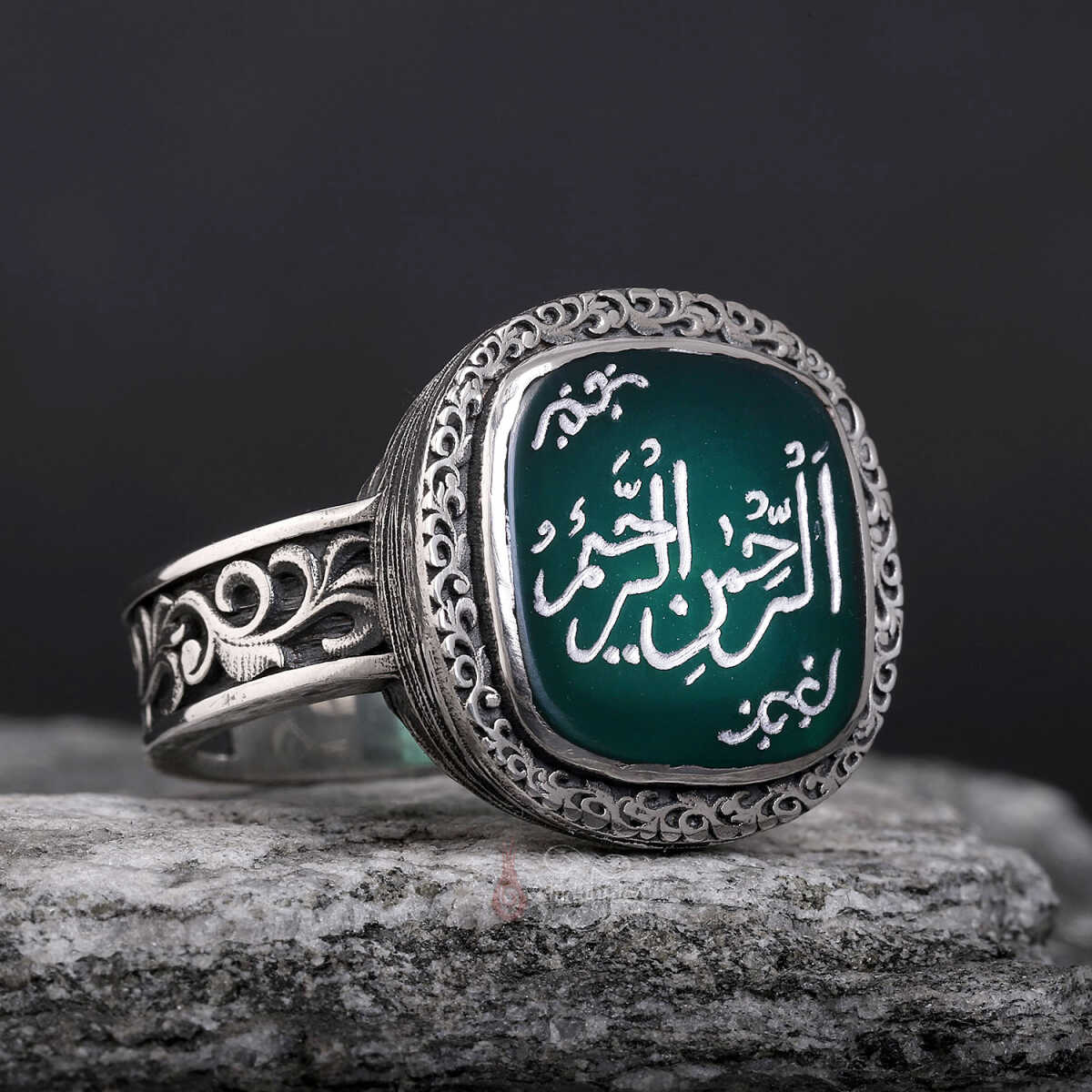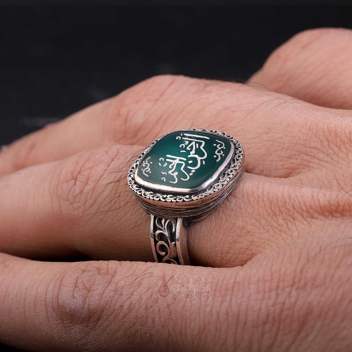 Yeşil akik taşın üzerine elde tek tek kazınarak işlenen bu Esma’lar, yüzüğe sadece estetik değil, derin bir manevî anlam da katıyor.